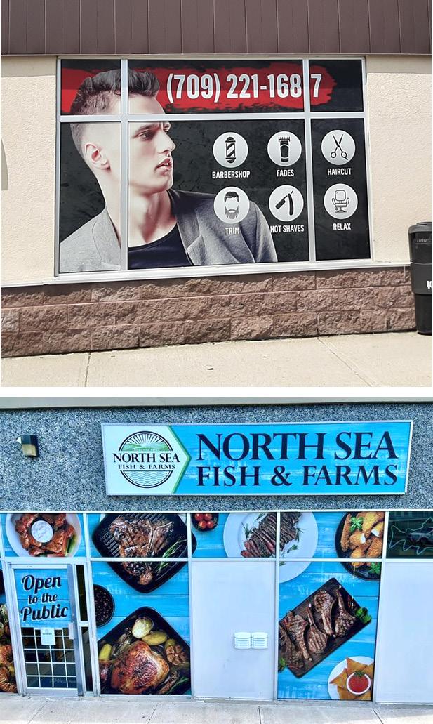 Design for the door, windows, and storefront in Calgary, showcasing the products they sell.