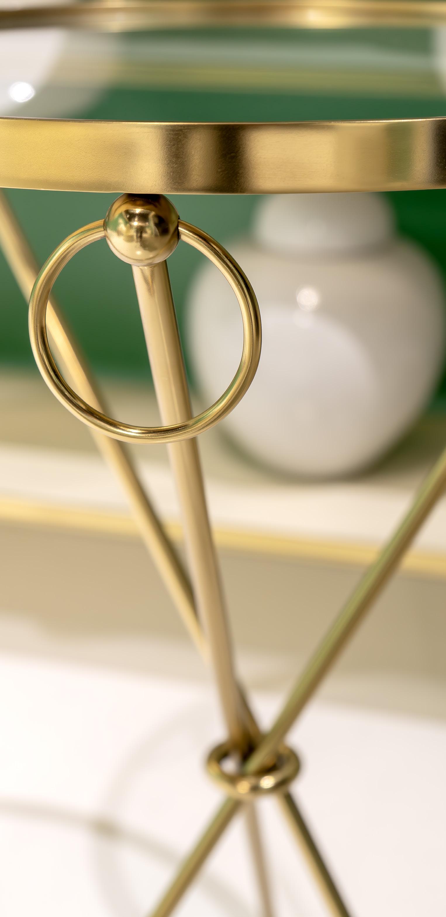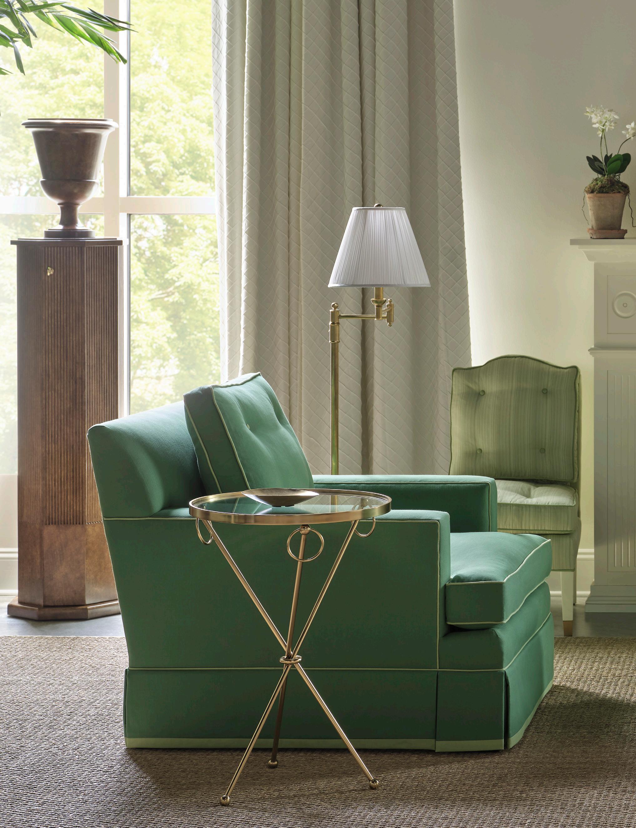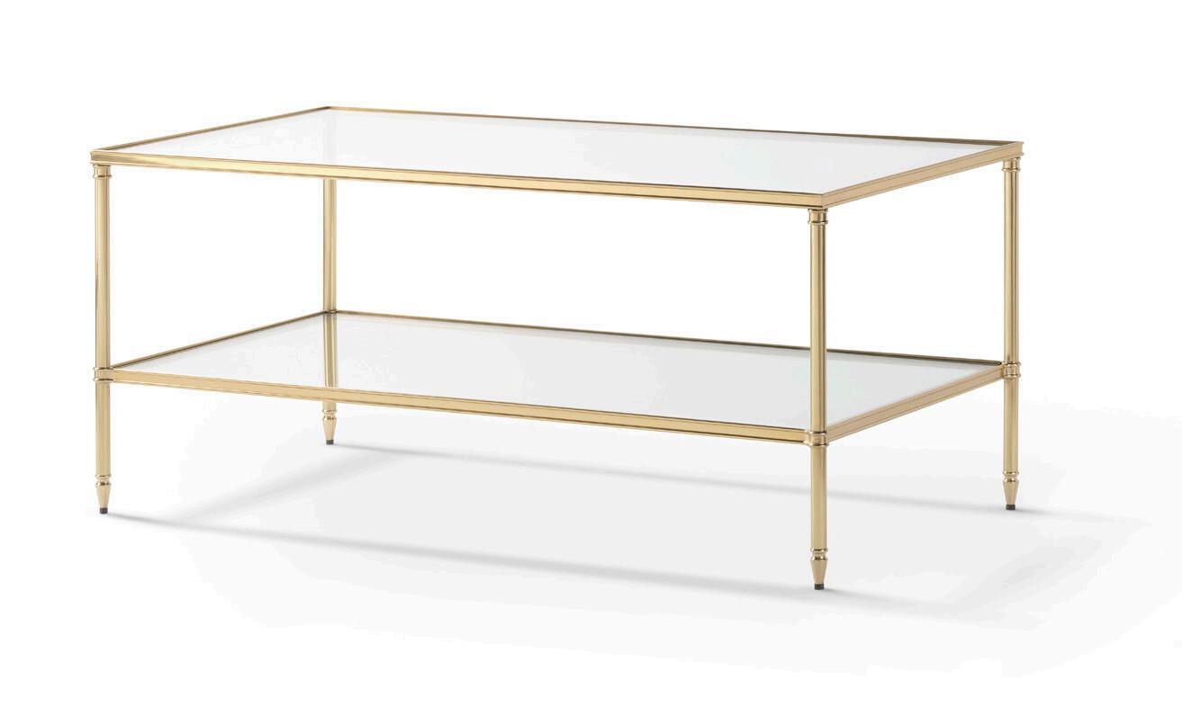 A celebration of elegant details, the Acacia Collection features an antique brass frame, legs with delicate castors or tapered leg and finialcapped tops. This versatile collection is ideal for layering lighting, books, or collected objects with a light, elegant touch.