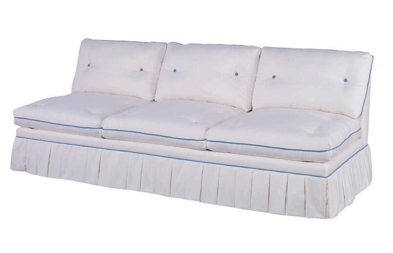 Custom-designed as a sectional for the Spring 2025 High Point Market, the Magnolia Armless Sofa features charming details like welts and butterfly Turkish corners.
