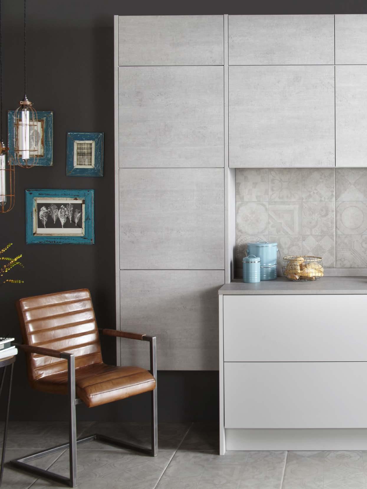 Otto is a popular slab door range available in a laminate or smooth matt painted finish. Versatility is the essence of the Otto range – it can be fitted either in a true handle-less design using an ingenious integrated handle rail fitted into the cabinetry behind the door or with standard or top fitting handles. Embrace your style with laminate finishes in Concrete, Dark Oak and Oxide or matt painted finishes in Anthracite, Light Grey and Porcelain.