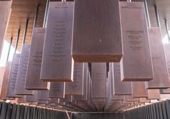 More than 4,400 Black people killed in racial terror lynchings between 1877 and 1950 are remembered here. Their names are engraved on more than 800 corten steel monuments—one for each county where a racial terror lynching took place—that form the main structure of the memorial at the heart of this six-acre site.