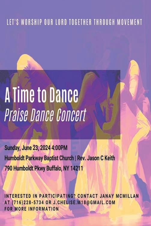 Prayer In the Park Ministry will begin in April (the date to be announced). Min. Barbara Johnson Kirk is Assistant to the Senior Pastor. For more information contact Pastor Wanda L. Strong Howard at (716)715-1969.