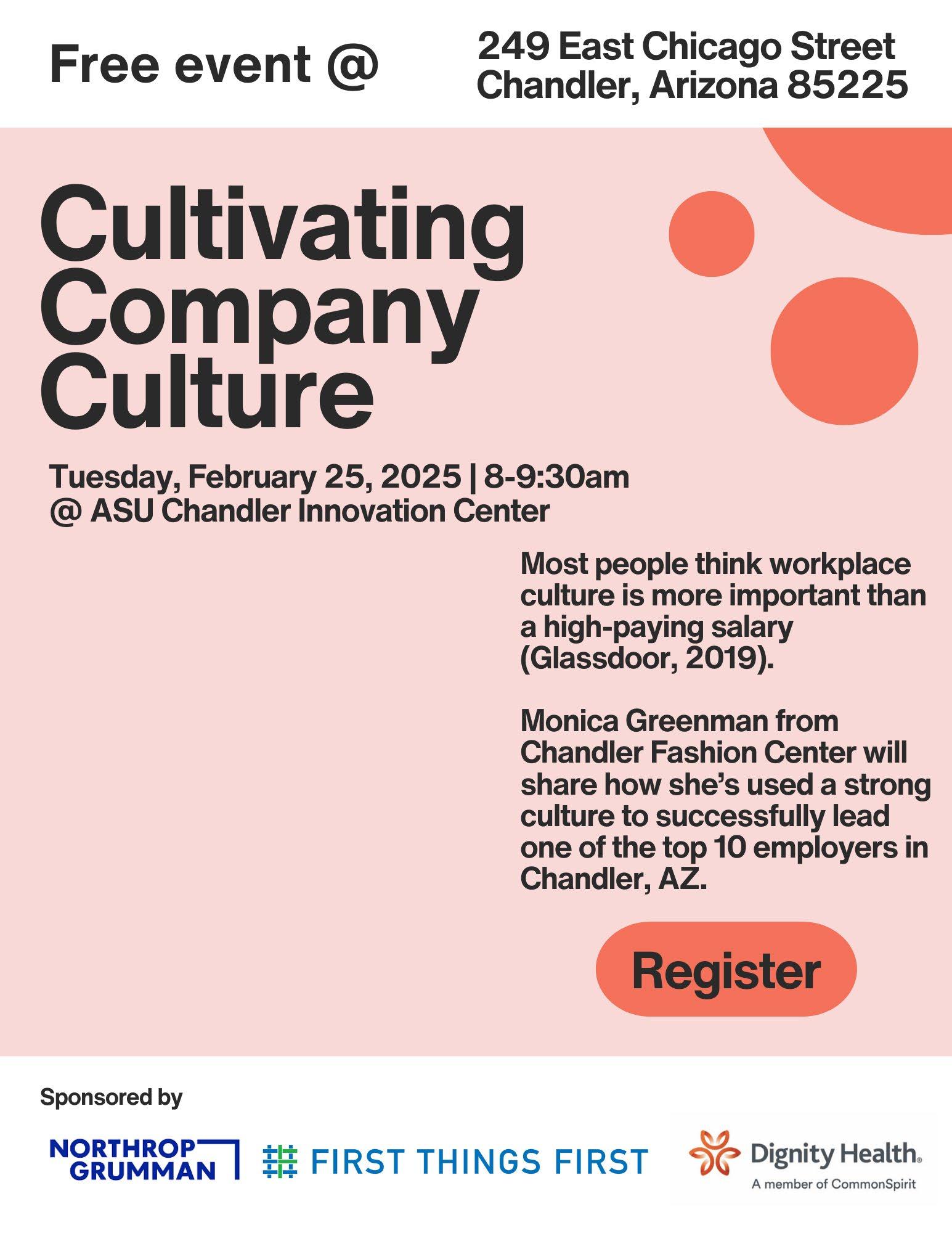 At our first Education & Workforce event, Monica Greenman (Chandler Fashion Center) will share how the culture she’s fostered spells success for over 2,600 businesses & 99,000 jobs in the shopping center’s 1,400,000 square feet.