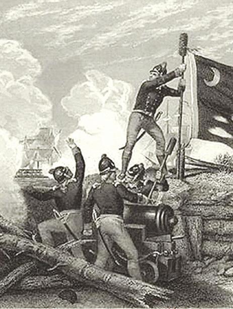 On June 8, the British fleet demanded surrender, which was rejected. And on June 28, warships advanced on the fort and began firing just before noon. The fort’s guns responded, and the cannonfire continued through the evening. Despite taking heavy fire, the fort survived with little damage. The interwoven fibers of the palmetto logs and the thick berm of sand between them absorbed the shock of British volleys.