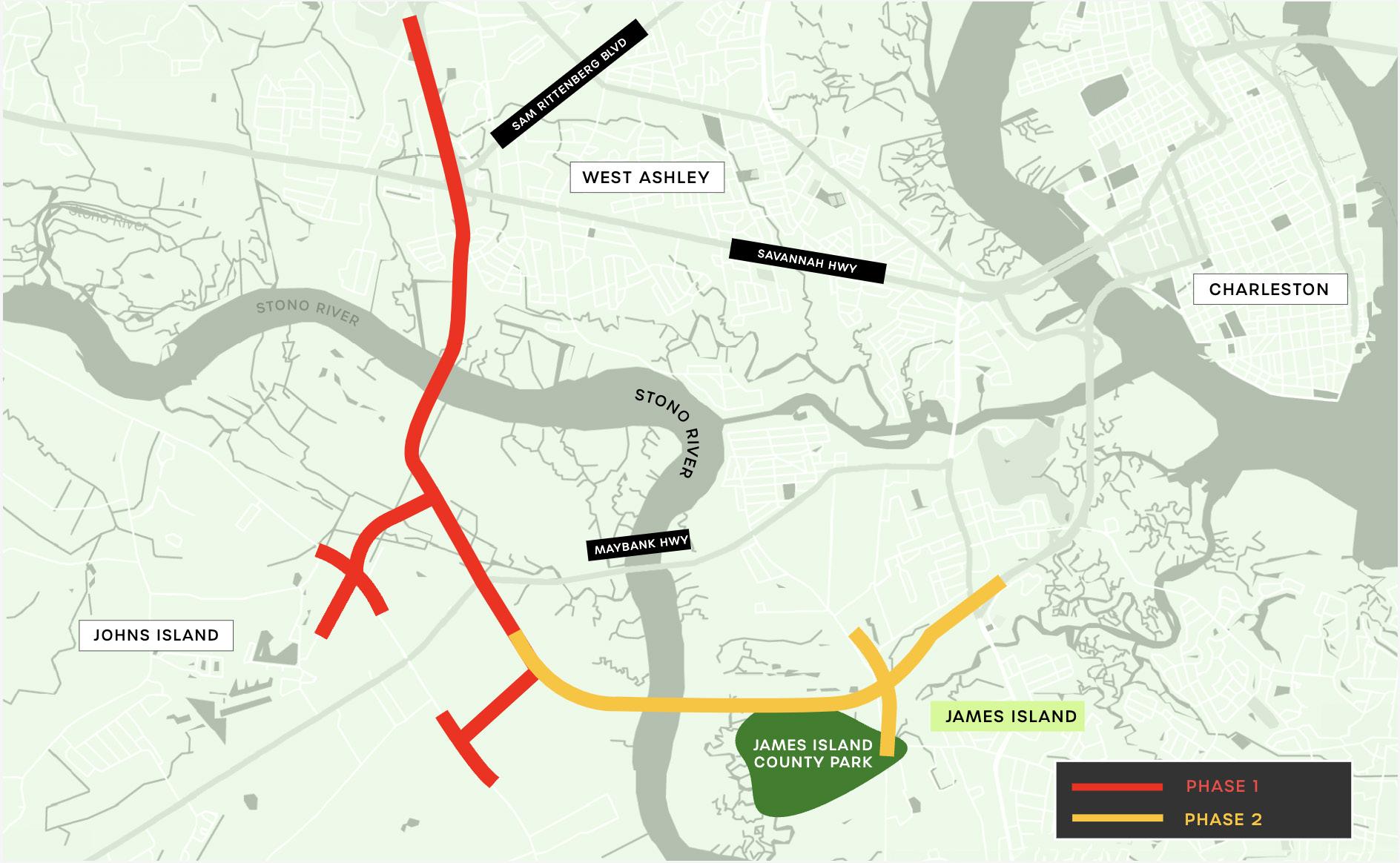 For the next couple of decades, an extension plan was pushed: to bridge West Ashley over the Stono River to Johns Island then on to James Island, where it would tie into the James Island connector at Folly Road.