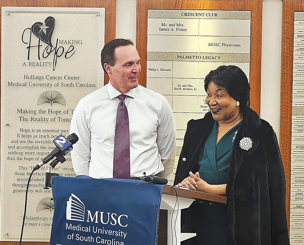 Judge spoke Feb. 20at the Medical University of South Carolina’s Hollings Cancer Center in downtown Charleston, the same place she received her diagnosis. Standing with her were the doctors who treated her as she presented them with a $1,000 check to support patients struggling in their battle with cancer.