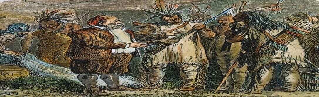 The Indians and settlers did not always get along. Here, John Smith is taking an Indian prisoner.