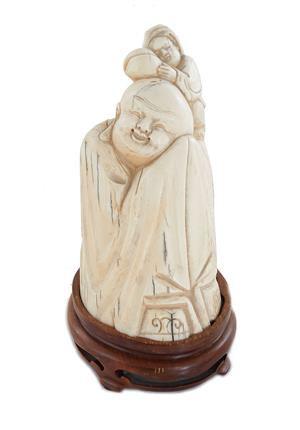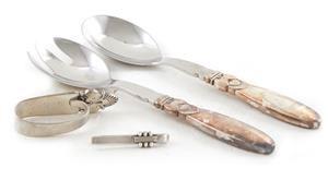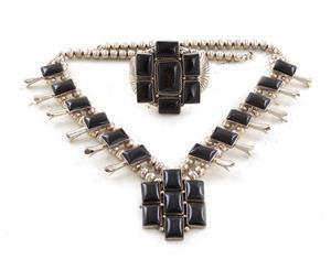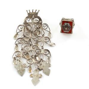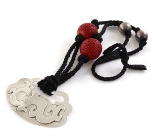 sterling ruyi head pendent suspended from black silk rope adorned with cinnabar and silver beads, in the Oriental taste; stamped: Patricia von Musulin, Sterling, L30" and pendant H2 1/2" W3 1/2"