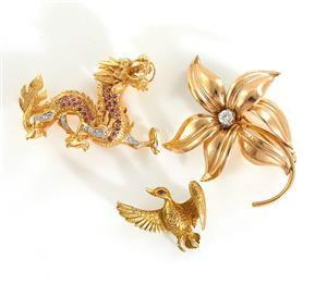 platinum and orange blossom diamond ring, size 6 Italian 18K green garnet and sapphire dome ring, size 4.5