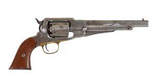 36-cal, single-action percussion revolver, brass trigger guard and backstrap, walnut grip, barrel L6 1/2", overall L12 1/8"