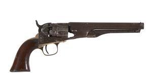 Model 1851 Navy, 36-cal, single-action percussion revolver, brass trigger guard and backstrap, walnut grip, barrel L7 3/8", overall L13 3/4"
