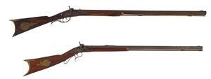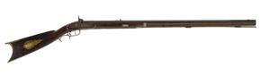 54-cal percussion, drop lock, walnut forearm and buttstock, ride side stock incised J.R.S.; barrel L20 7/8", overall L38"