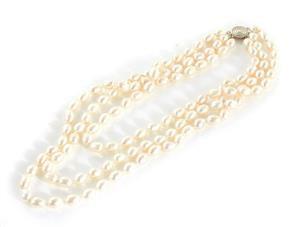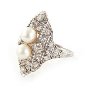 possibly made or retailed by Gubelin, two slight off round cream/gold white pearls, approx. 13.9x14.8mm and 14.2x15.1mm well matched pearls with 18K white gold piercedear mounts, H1", and