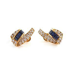 Pair Sapphire and Diamond Earrings