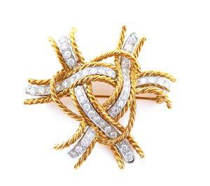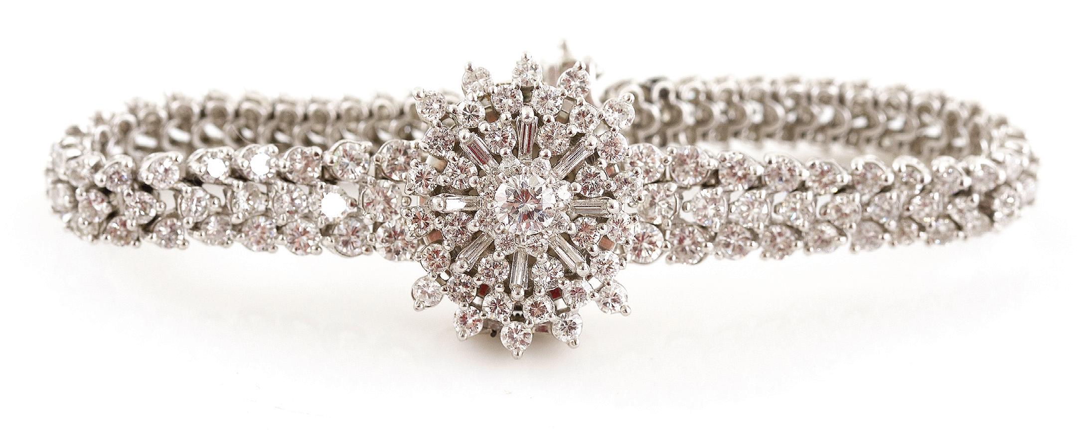 Tiffany & Co Diamond Bracelet twenty round brilliant-cut diamonds, approx. 2.0ctw, color F-G, clarity VS, in 18k gold ornate link setting, stamped: Tiffany & Co, 18K; L7 1/2", and 53.0g