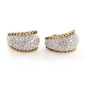 one hundred and eight round brilliant diamonds, approx. 2.25ctw, color G-H, clarity VS, in 18K yellow and white gold pierced ear setting; H1", and 13.0g all in (2pcs)