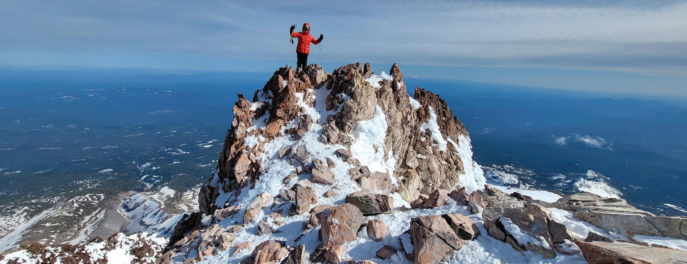 Rosana Slezeviciute, the chaplain at Mercy Medical Center Mount Shasta in Northern California, summits Mount Shasta.