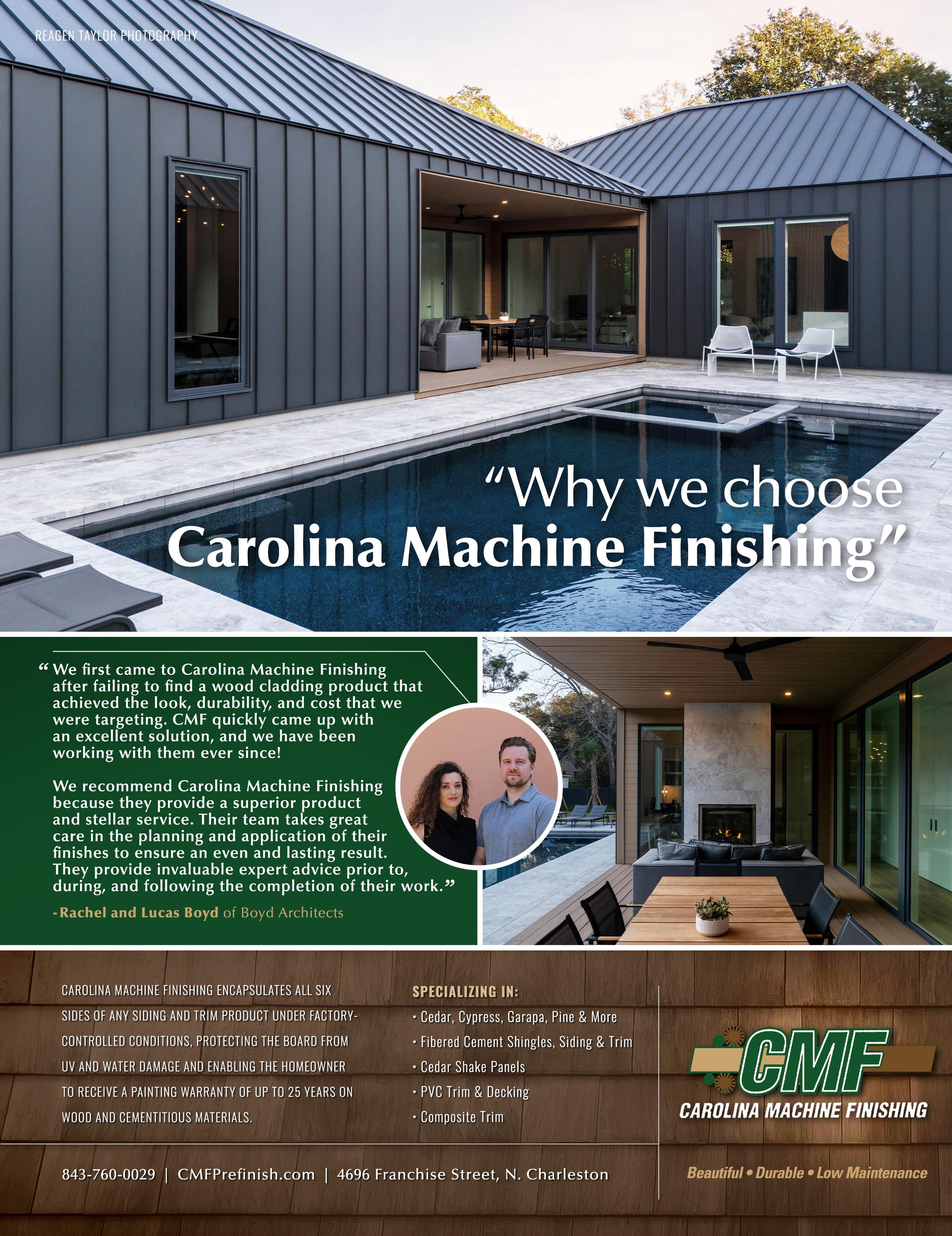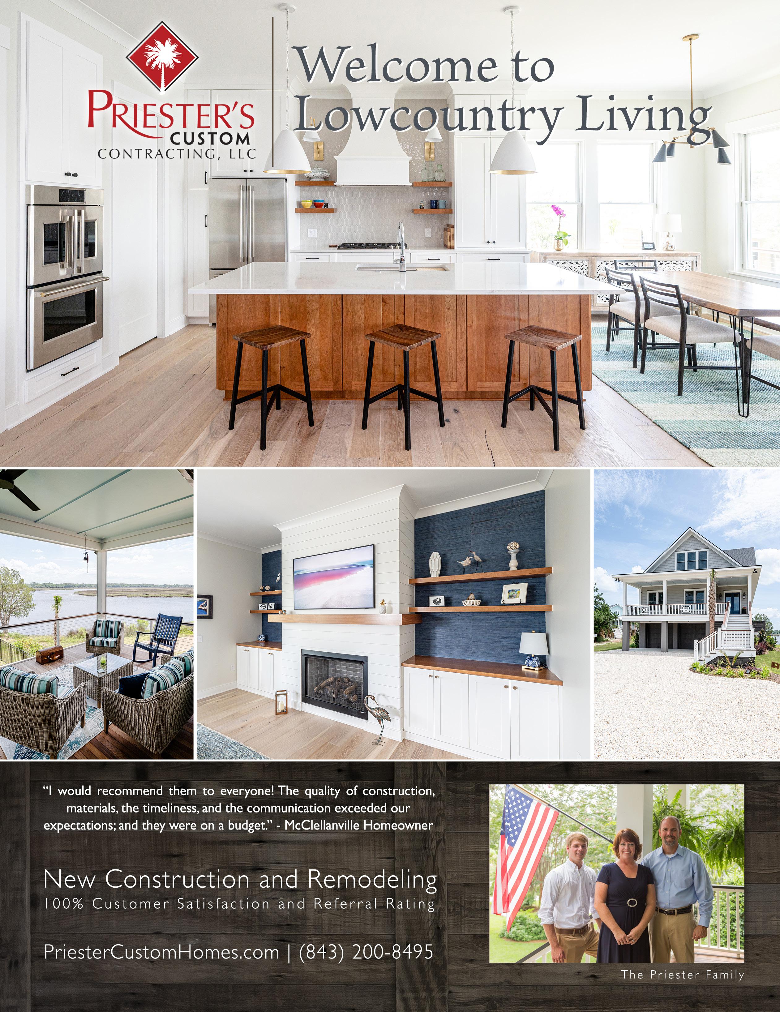 New Home Charleston (NHC) has not independently tested any services or products advertised herein and has verified no claims made by its advertisers regarding those services or products. NHC makes no warranties or representations and assumes no liability for any claims regarding such services or products. Readers are advised to consult with the advertiser and/or other home repair/renovation professionals regarding any such claims and regarding the suitability of an advertiser’s products. No reproduction of printed materials is permitted without the consent of the Publisher of CharlestonHome+Designmagazine. Copyright 2024 by New Home Charleston, Inc., all rights reserved.