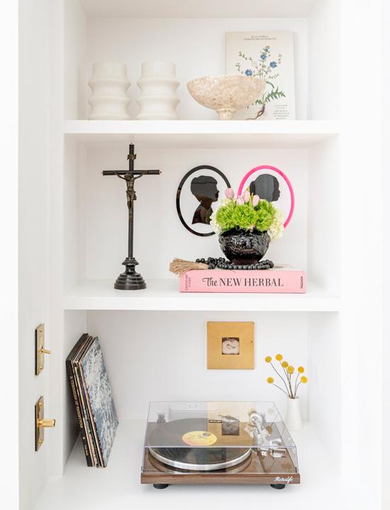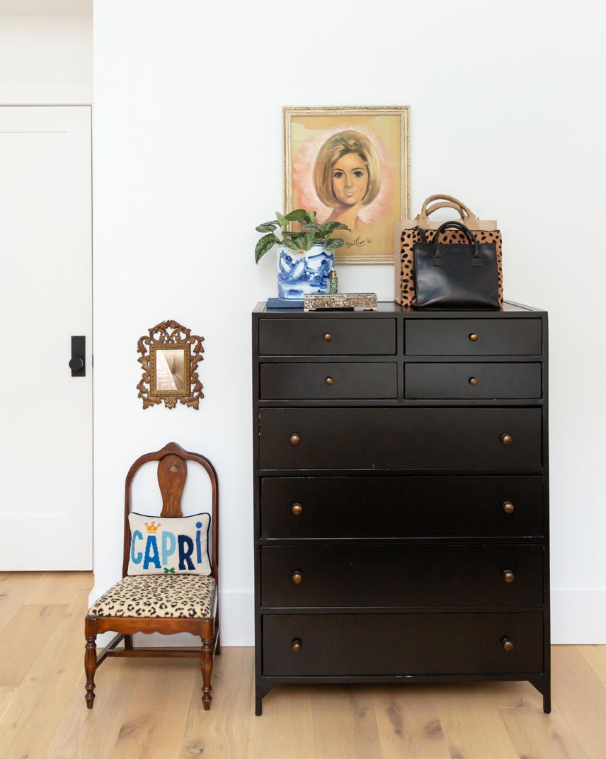 The built-in charm of this older home reveals Michelle’s collected decorative vision, much like a storybook. “I wanted to achieve a jewel box effect with pieces that fit this space perfectly. Think of Goldilocks, who wanted everything just right,” she says, adding, “I love freshening up cherished pieces I already have if the scale and style will work. This way, I can fall in love with them all over again.”