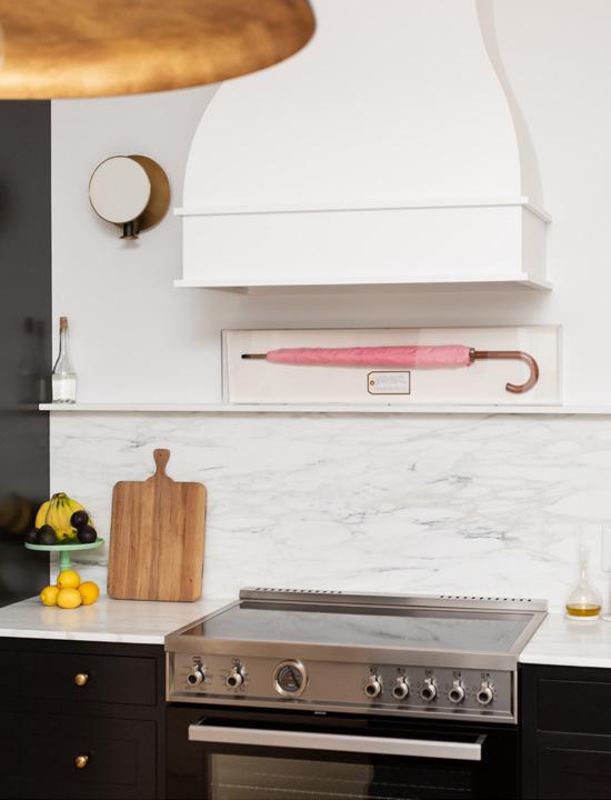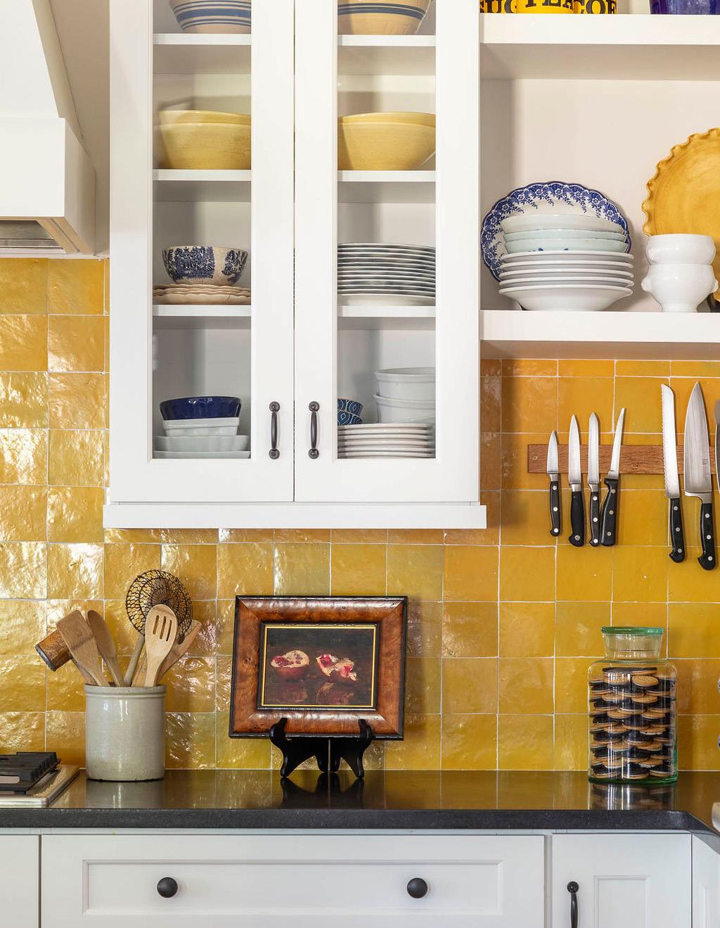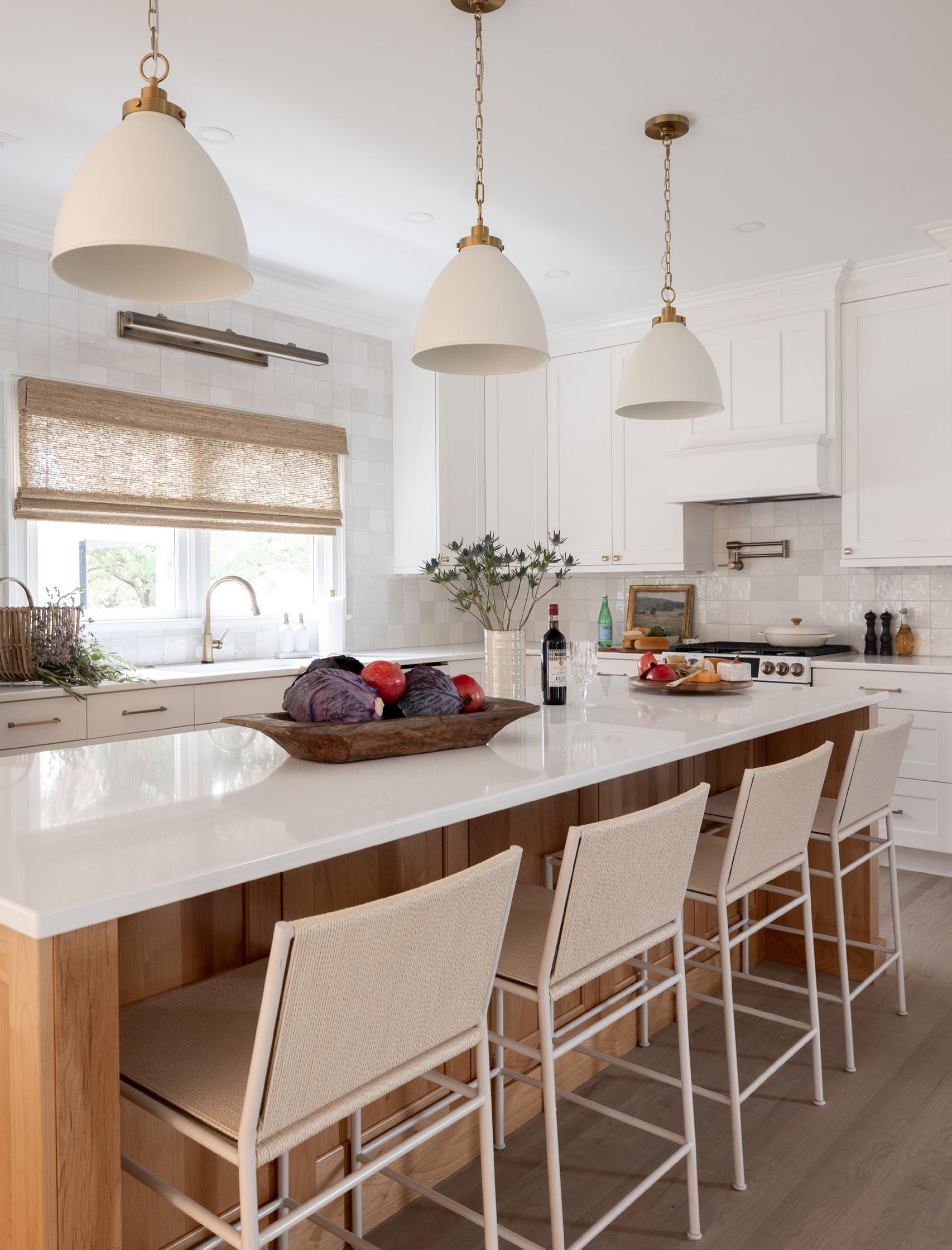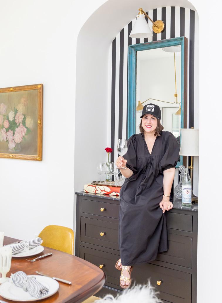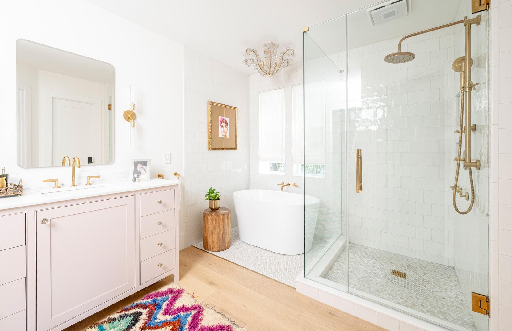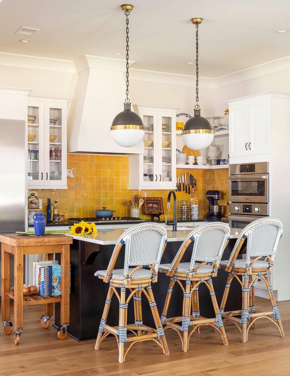 Michelle made the most of her cozy kitchen by swapping fixtures and finishes for classic styles and updating the paint color based on her evaluation of the space’s exposure to natural light. The chosen colorways tie in with her fabric and furniture choices in ways that consider size, scale, and, of course, some feng shui. “It’s an oasis filled with my favorite things,” she says.