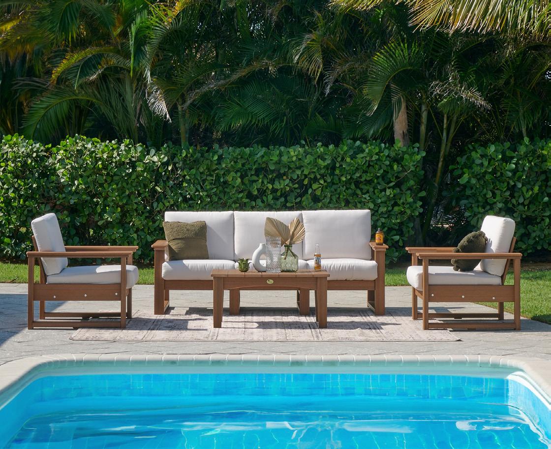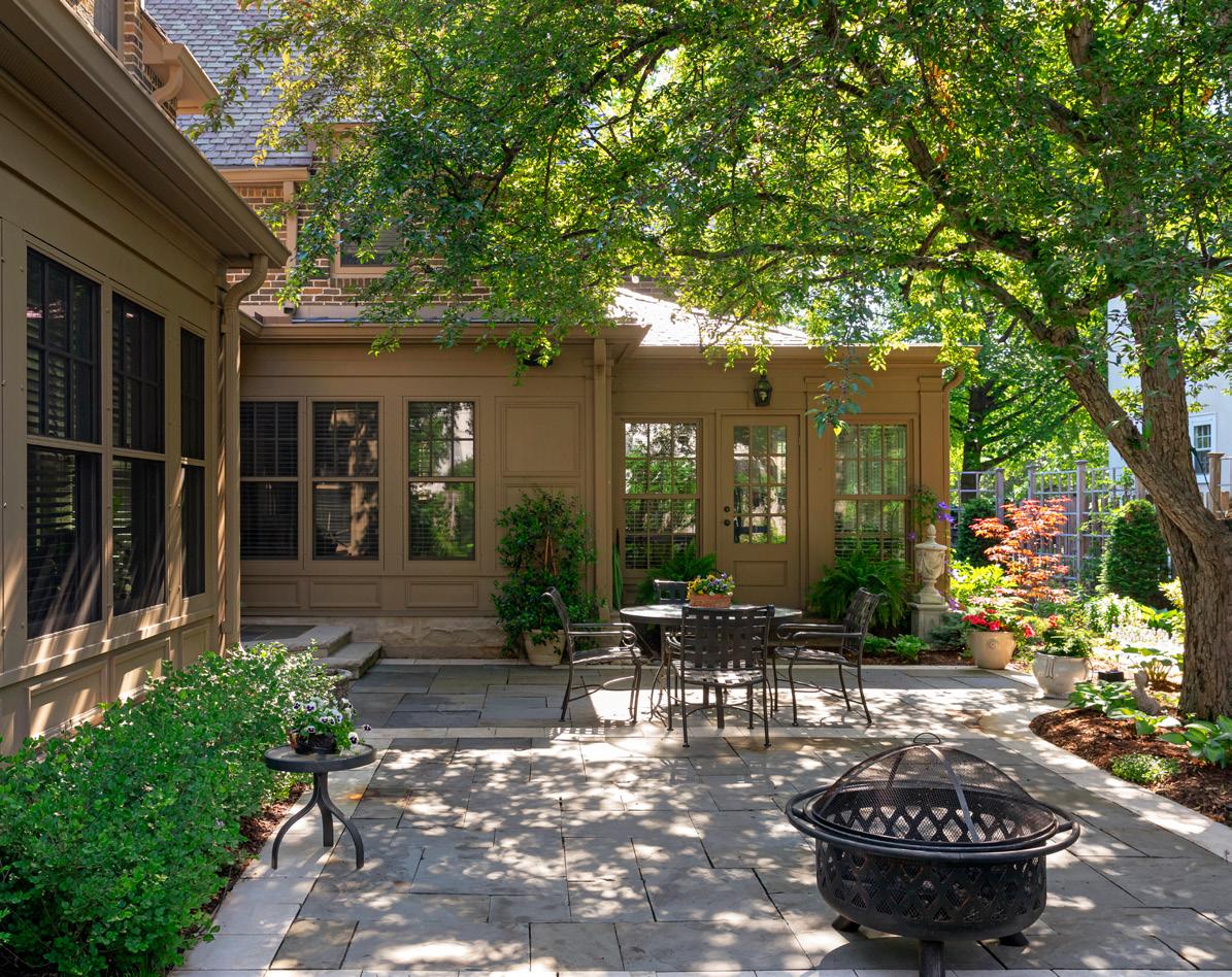 I would design an outdoor space with a porcelain tile complemented with a custom outdoor area rug. The rug will accent the floor while protecting the surface.