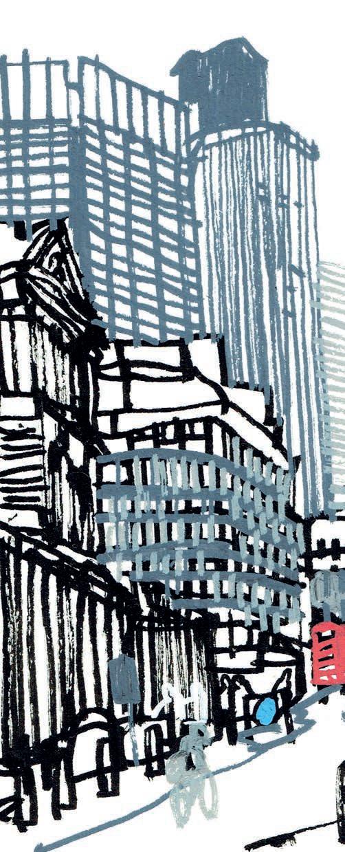 “I worked at Artists & Illustrators magazine for about seven years, ending up as editor (until 2004),” he explains. “It was a full-on, exciting time, working with a great team for a friendly readership. But my drawing slipped. I have a sketchbook from this time filled with hasty drawings of stuff on my desk, such as staplers, PC equipment and telephones.” Yet, it’s mainly the city and urban life that pulls him in. “I’m still not sure exactly what it is that makes me stop and draw,” he muses. “The city’s changing skyline interests me. I have drawings of the Shard from when it was a stump, just a few storeys high. I like a political event, such as a general election or