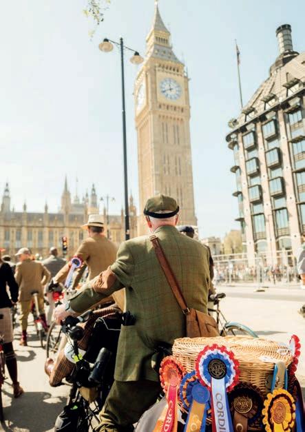 As a founder, you might well expect Holdstock to wax lyrical about his brainchild, The Tweed Run. But he could defy anyone not to be taken with the occasion. Since 2009, participants have donned their well-pressed best and cycled through London, stopping along the way to take tea and have a picnic, rounding things off with an old-fashioned knees-up in the afternoon. Marshals keep traf c at bay, making way for the cheery, rosy-cheeked participants who ripple past landmarks such as Buckingham Palace, Big Ben, the Tower of London and St Paul’s Cathedral.