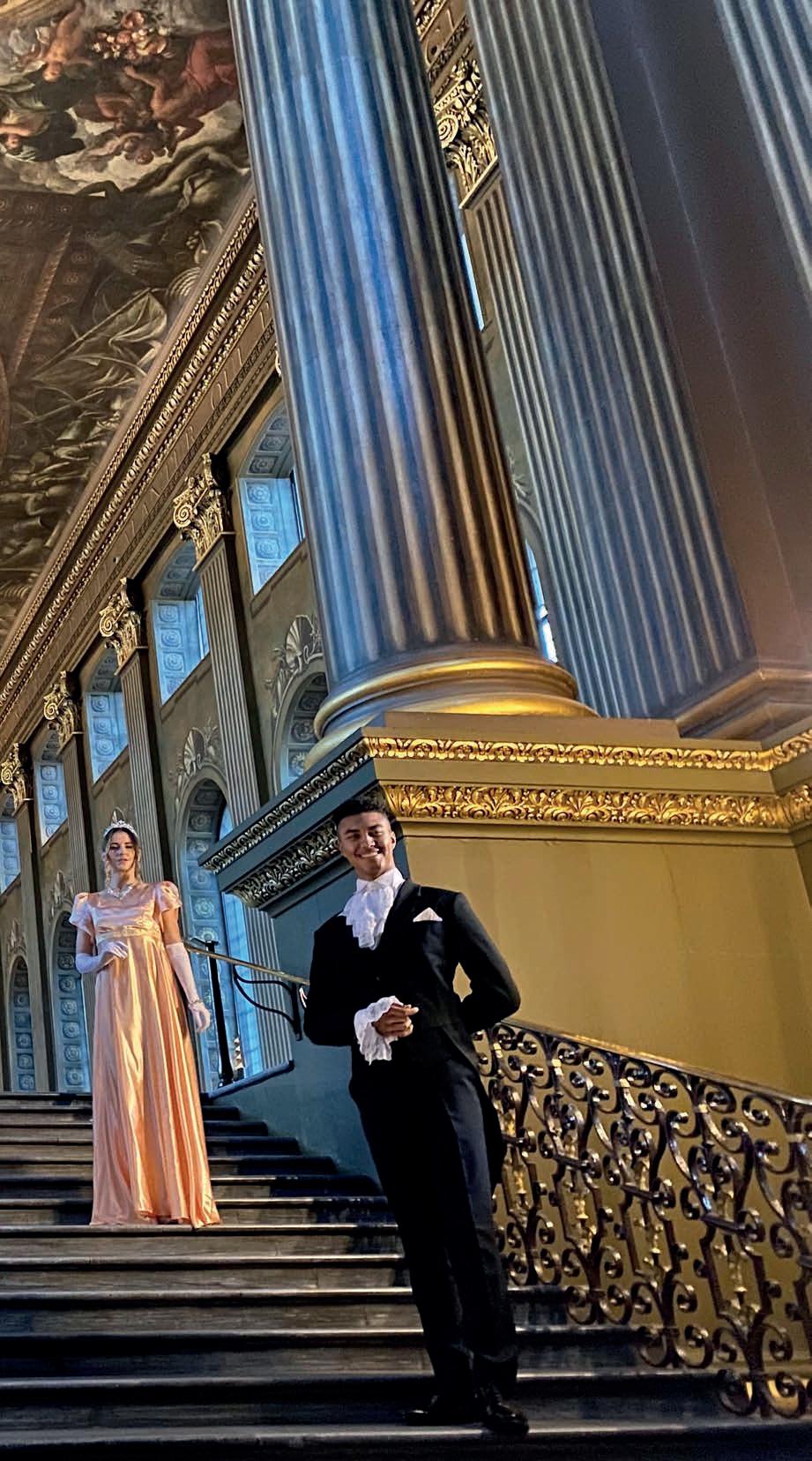 The small-group tour also includes entrance to the Chapel of St Peter & St Paul, which provided the perfect setting for the wedding of Colin and Penelope in Bridgerton’s third series, plus the famous Painted Hall –the ceiling of which was painted by Sir James Thornhill – which features in the film Pirates of the Caribbean: On Stranger Tides ornc.org/whats-on/wigs-weddings-powder-andpalaces-film-tour