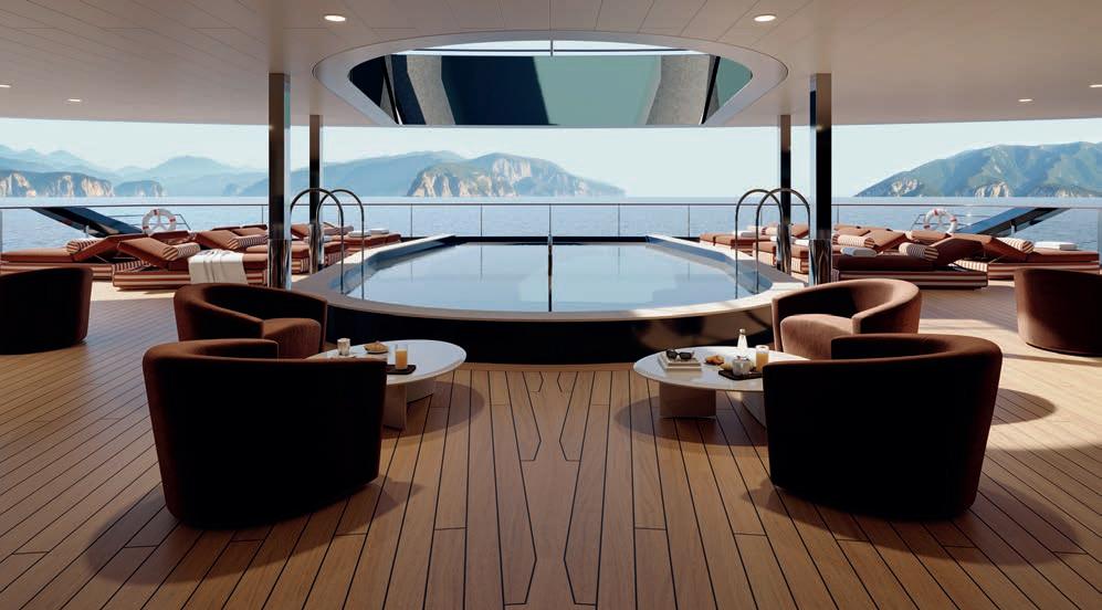 One indication of where luxury cruises are going is the arrival of hotel spin-o ships run by Ritz Carlton, Orient Express and Four Seasons. Edwina Lonsdale, MD of Mundy Cruising, which specialises in luxury cruising, says these are good products for testing the water but everyone agrees, luxury cruising is about more restaurant choice, larger suites and superb destinations. at’s why Crystal has all-inclusive celebrity chef options, such as the only Nobu Matsuhisa restaurant at sea – Umi Uma – on its two ships. Bigger cabins are on the way on Regent’s Seven Seas Prestige, which will have 12 suite categories when it launches in December 2026, including a £20,000-a-night Skyview Regent Suite at 817 square metres. Personal attention is key too. Windstar has two new 224-passenger ships arriving, Star Seeker this December and Star Explorer next December, with a 1:2 sta -to-guest ratio. But luxury isn’t just about the ship, says Jason Montague, Chief Luxury O cer of Oceania and Regent Seven Seas Cruises: “It’s in the destinations we travel to and how we take you there, with more overnight stays and immersive shore excursions than ever before”.