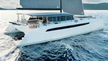 This is a stylish cruising cat that eschews the expense of daggerboards but provides more of a focus on performance thanks to twin helms on the sponsons, careful attention being paid to weight saving and a generous sail area.
