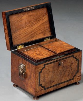 GENTRY REQUIREMENTS Opposite, top to bottom: Jane’s Reading Room in Henry’s Townhouse, the Marylebone residence of Jane Austen’s brother. Current owners Steven and Jane Collins worked with Russell Sage Studio to refresh the property in a way that’s sympathetic to its original and architectural features, using National Trust paints throughout; a klismos chair with cream and gilt decoration c.1810, LAPADA This page, clockwise from top left: Lucinda Martin’s grand Shropshire project received the Regency treatment with classical curtain draping and Grand Tour inspired furnishings; a pair of George III mahogany torcheres c.1760-65 (possibly by Thomas Chippendale), estimated £30,000-£50,000, Christie’s; Burr tea caddy c.1820, £2,850 Reindeer Antiques; the first fully illustrated editions of Jane Austen’s collected works, £12,500, Peter Harrington Rare Books