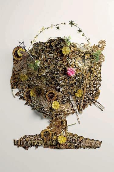 PORTRAIT OF A NATION Clockwise from top left: Hew Locke’s collage The Prize is based in the British Embassy’s Washington DC office; hanging in the Department of Culture, Media and Sport, Devotional by Sonia Boyce is a totemic list of popular Black female singers through recent history; there are two of Andy