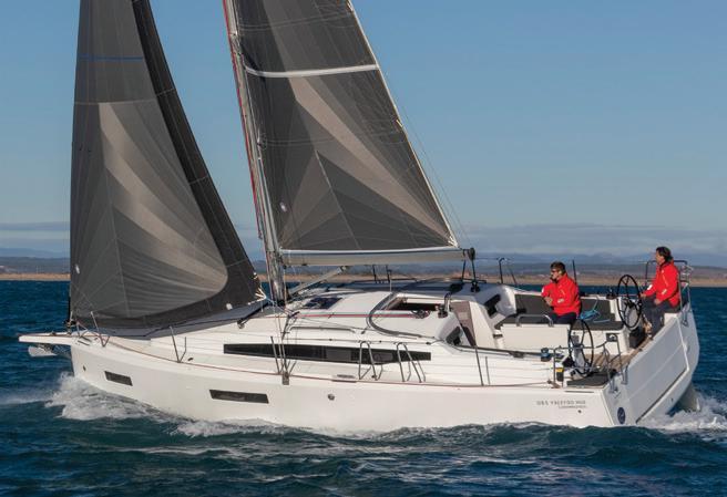 A companionway leads down to the spacious owner's cabin forward that provides a double V-berth and a private head and shower. Guests can luxuriate in a central cabin stretching across the full 12-foot beam, equipped with a double berth and a settee that can double as a single berth. At the foot of the companionway there's a below-decks galley that Jeanneau describes as a "breakfast point." It provides extra worktop and space for an optional microwave, fridge and coffeemaker. In an alternative layout, this area is occupied by a day head.