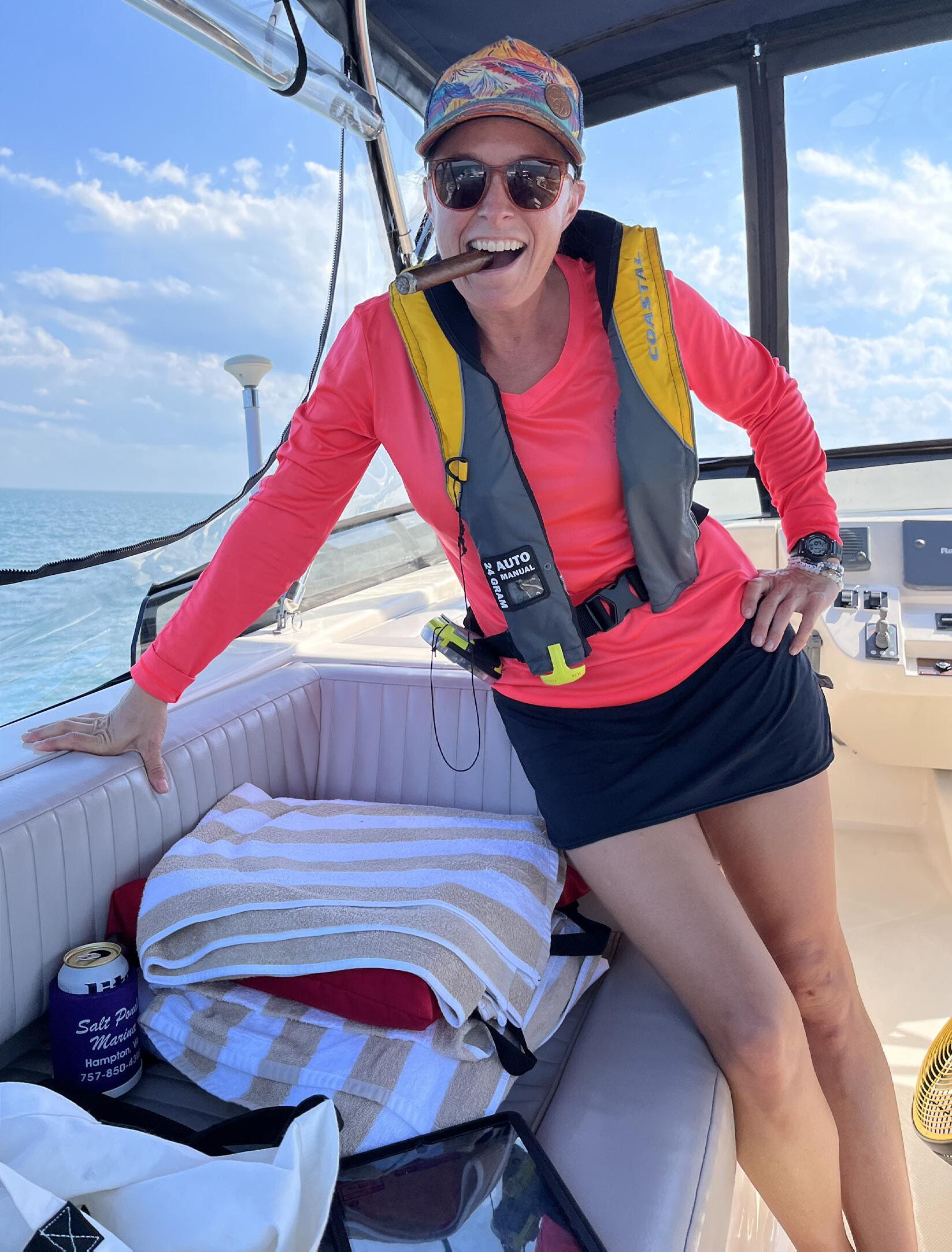 Knox is using this as an opportunity to spend more time with her father, both boating and planning. “That’s one of the best things about this,” she says. “At dinner, we’ll both have our phones out, nerding out with Navionics, all the while smoking cigars and having a Miller Light. No matter what, I’ll never regret spending this time with my dad.”