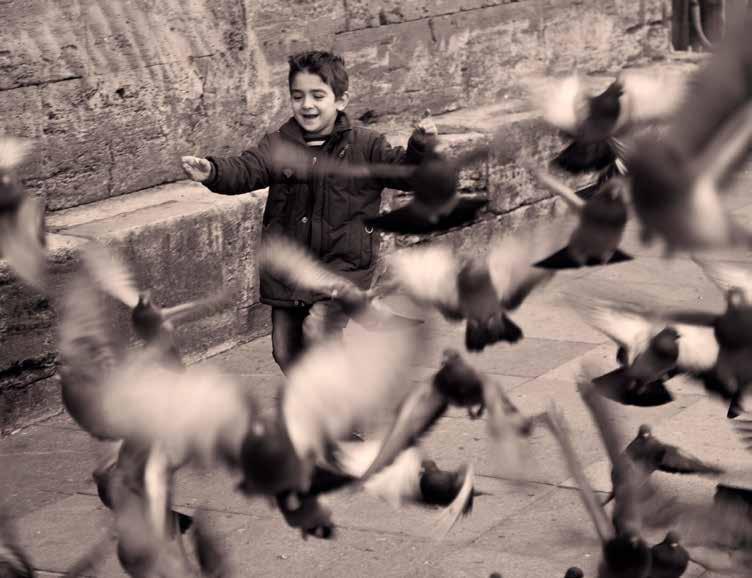 Mi mundo era pequeño, pequeña mi cuna, pequeño mi patio, pequeños mis pasos y pequeña y angosta mi calle. Calle que apenas el sol veía. Solo a media mañana. Sin embargo, yo ya tenía recuerdos. Dos manos, dos, impedían a mis pequeños pies ir a la plaza de las palomas. Palomas que comían de mis manos, palomas que me querían. Mis pasos truncados por dos manos, dos. A lo lejos, mis abuelos acudían con un pañuelo blanco de paz y armonía y en volandas, pies en polvorosa de la plaza de mis alegrías. Épocas de añoranzas. En sus bancos, ecos de mil batallas. Se oía a los enamorados con sus besos y en sus oídos los secretos que se perdían con ellos. Eran tiempos lentos, tiempos benévolos que no acudían a mí. Se instalaron las nieves como la noche al día, guardadas las remembranzas en aquel banco que hoy duerme.