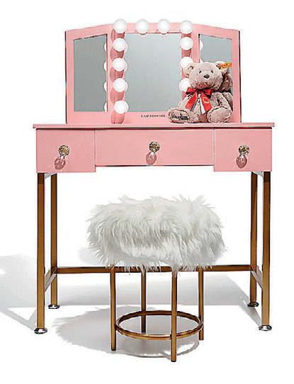 No hay nada major que un espejo vanity para que tu pequeña tenga organizada su joyería, accesorios y todo lo que necesita día a día. Esta opción de Teamson x Fao Schwarz es de estilo moderno glam y detalles en dorado, incluye un espejo de acrílico con marco de