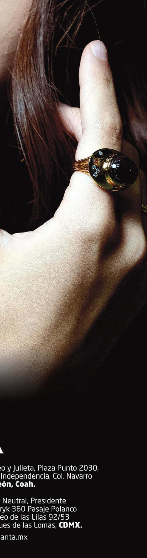 AVENIDA EUGENIO GARZA SADA SUR, NO. 2245 COL. ROMA, C.P. 64700, MONTERREY, N.L. DISTRIBUCIÓN: AVENIDA EUGENIO GARZA SADA SUR, NO. 2245 COL. ROMA, C.P. 64700, MONTERREY, N.L. CHIC MAGAZINE ® ES INDEPENDIENTE EN SU LÍNEA DE PENSAMIENTO Y NO ACEPTA NECESARIAMENTE COMO SUYAS LAS IDEAS DE LOS ARTÍCULOS FIRMADOS, SIENDO EL CONTENIDO DE LOS ARTÍCULOS FIRMADOS RESPONSABILIDAD DE LOS AUTORES. QUEDA PROHIBIDA LA REPRODUCCIÓN TOTAL O PARCIAL DE LA PRESENTE EDICIÓN, MISMA QUE SE ENCUENTRA REGISTRADA A NOMBRE DE EDITORA CRONOS, S.A. DE C.V.