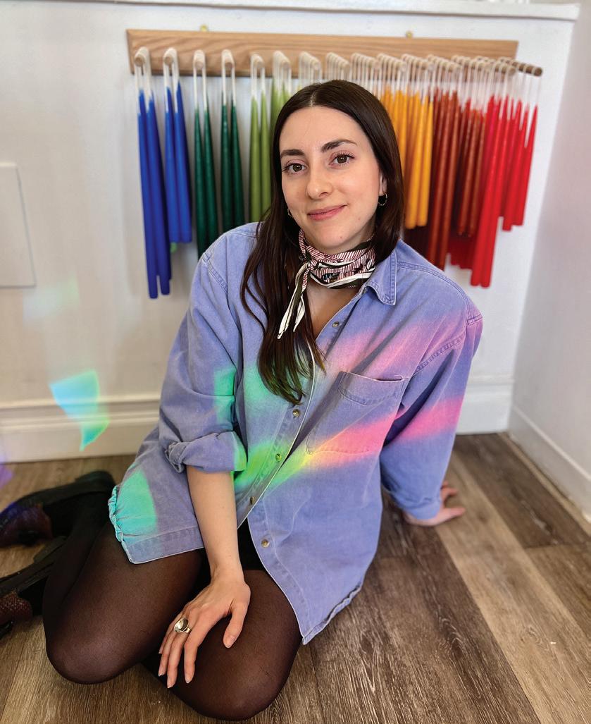 to develop an artistic eye and the operational skills needed to run a small business. Every item at MOLASSES has a story worth telling—and Morrill is happy to share each product’s origins with her appreciative customers. Take the Carrot Beeswax Taper Candle ($15), sourced from a family-run farm in Pottstown, Pennsylvania. “The farm grows the produce and then harvests their favorite vegetable (carrot or otherwise) to cast a candle mold from. They then fill these molds with their own bees’ beeswax, thus creating an entirely grassroots work of art,” Morrill explains.