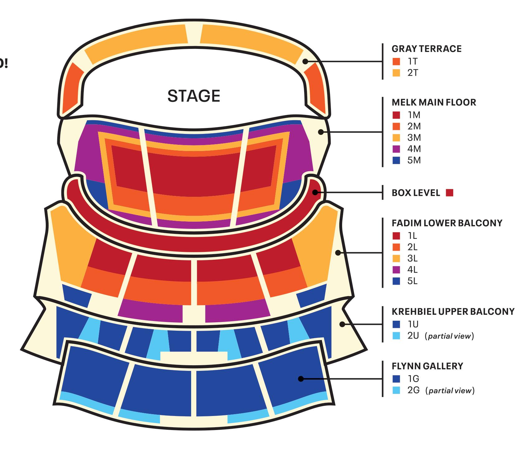 All printed prices are valid through June 30, 2023, and are subject to increase based on demand after that date. 2U-Upper Balcony and 2G-Gallery are partial view. Seating is subject to availability at the time of sale. Terrace subscriber seats may be relocated if a concert involves a screen or chorus. Box Level CYO and add-on savings is 5%. Savings are applied to standard prices at the time of order, which can increase based on demand. All artists, programs, dates and times are subject to change.