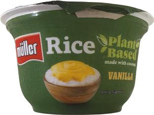 Coconut Milk Rice Dessert di Müller Rice Plant Based è un dessert in una confezione riciclabile da 170 g che contiene cocco, si può preparare nel microonde e può essere consumato caldo o freddo.