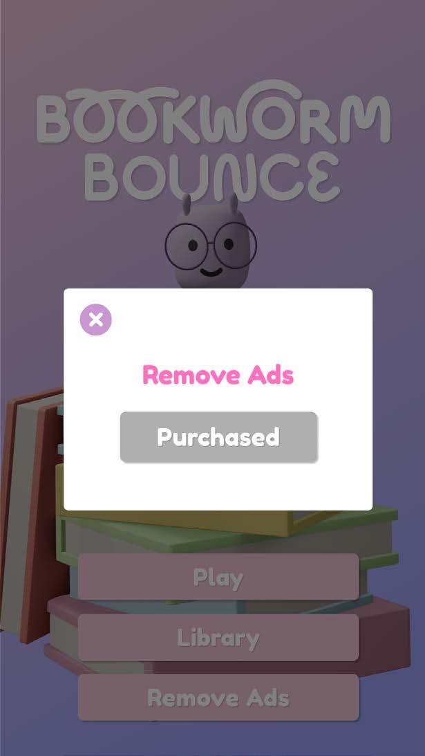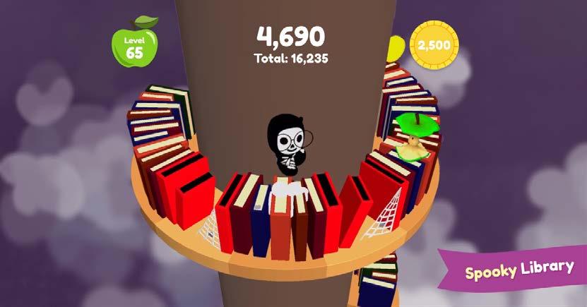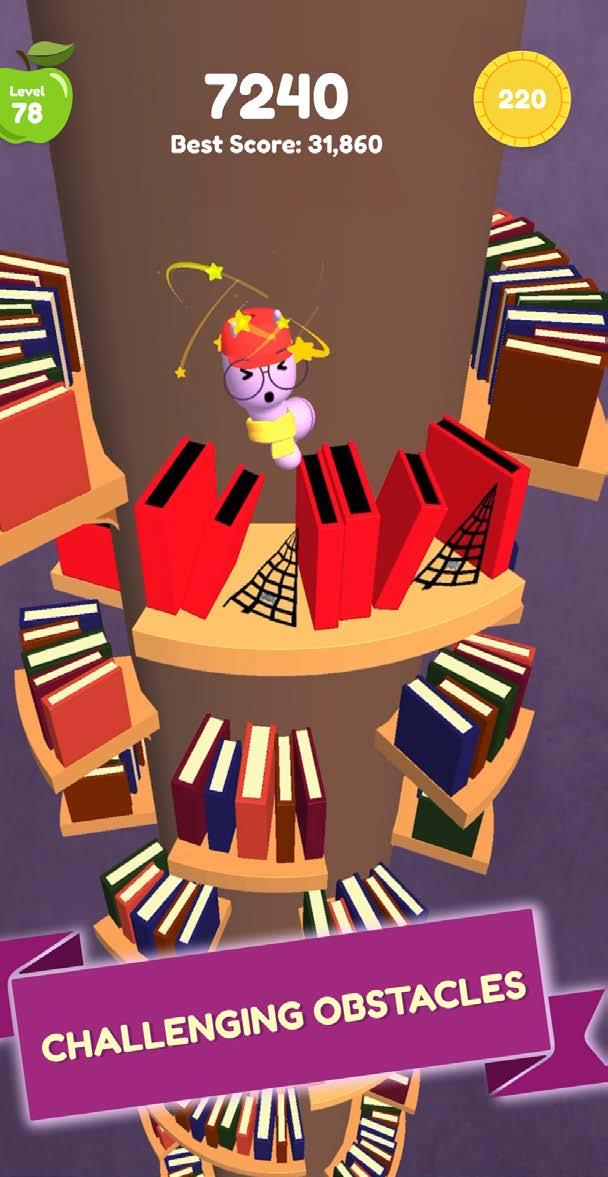 Bookworm Bounce is a hyper-casual mobile game where you guide Willow through circular platforms of books. Slide the platforms left to right using your finger to find a break in the platform that Willow can travel through and onto the next platform. But be careful, if you land on a red book or obstacle your streak is over and the level has failed!