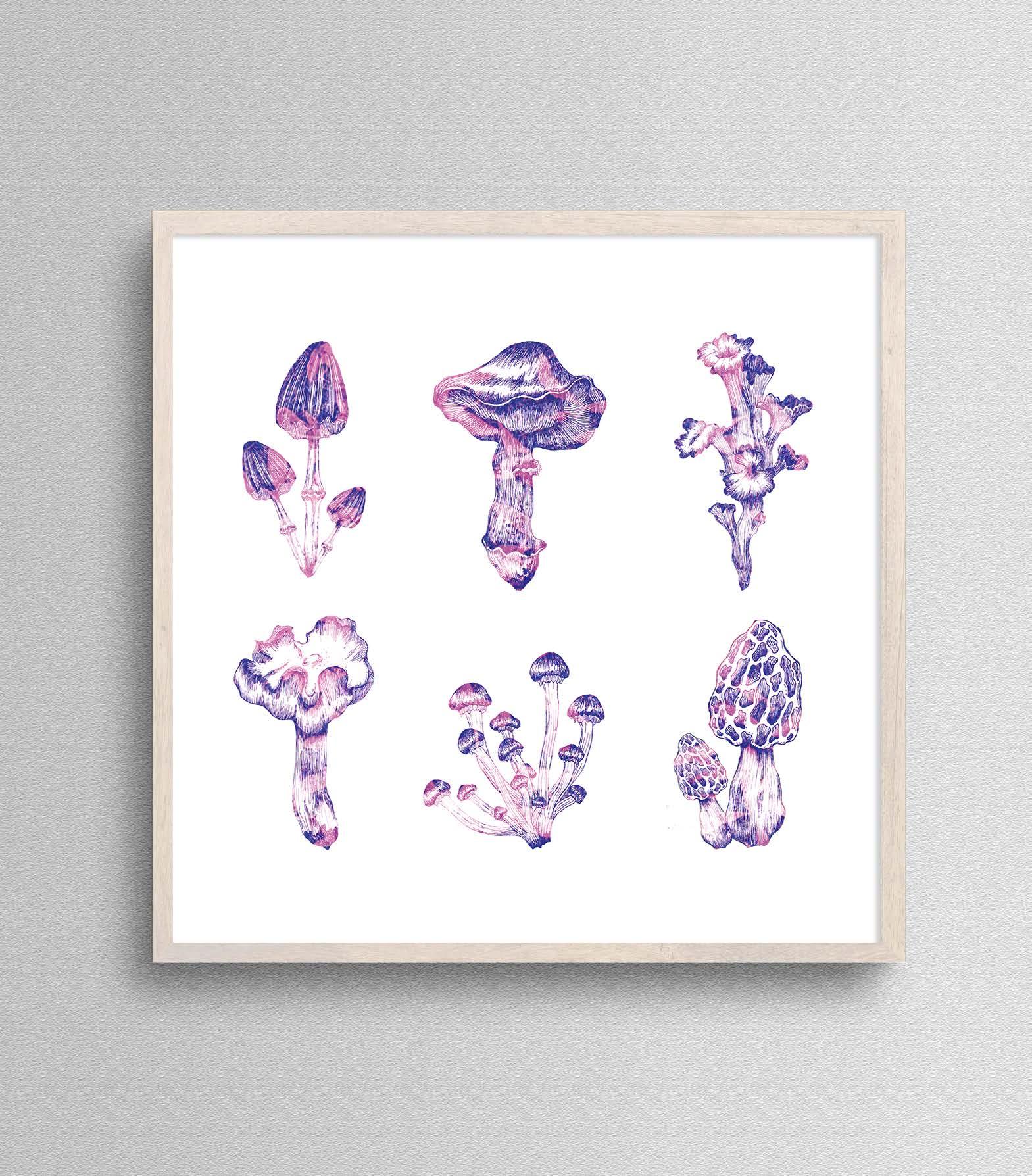 The overlapped pattern on the mushrooms not only gives depth to them but express the hallucinogenic feeling of this subgenre. White space allows the viewers to concentrate on the mushrooms themselves without any distraction.
