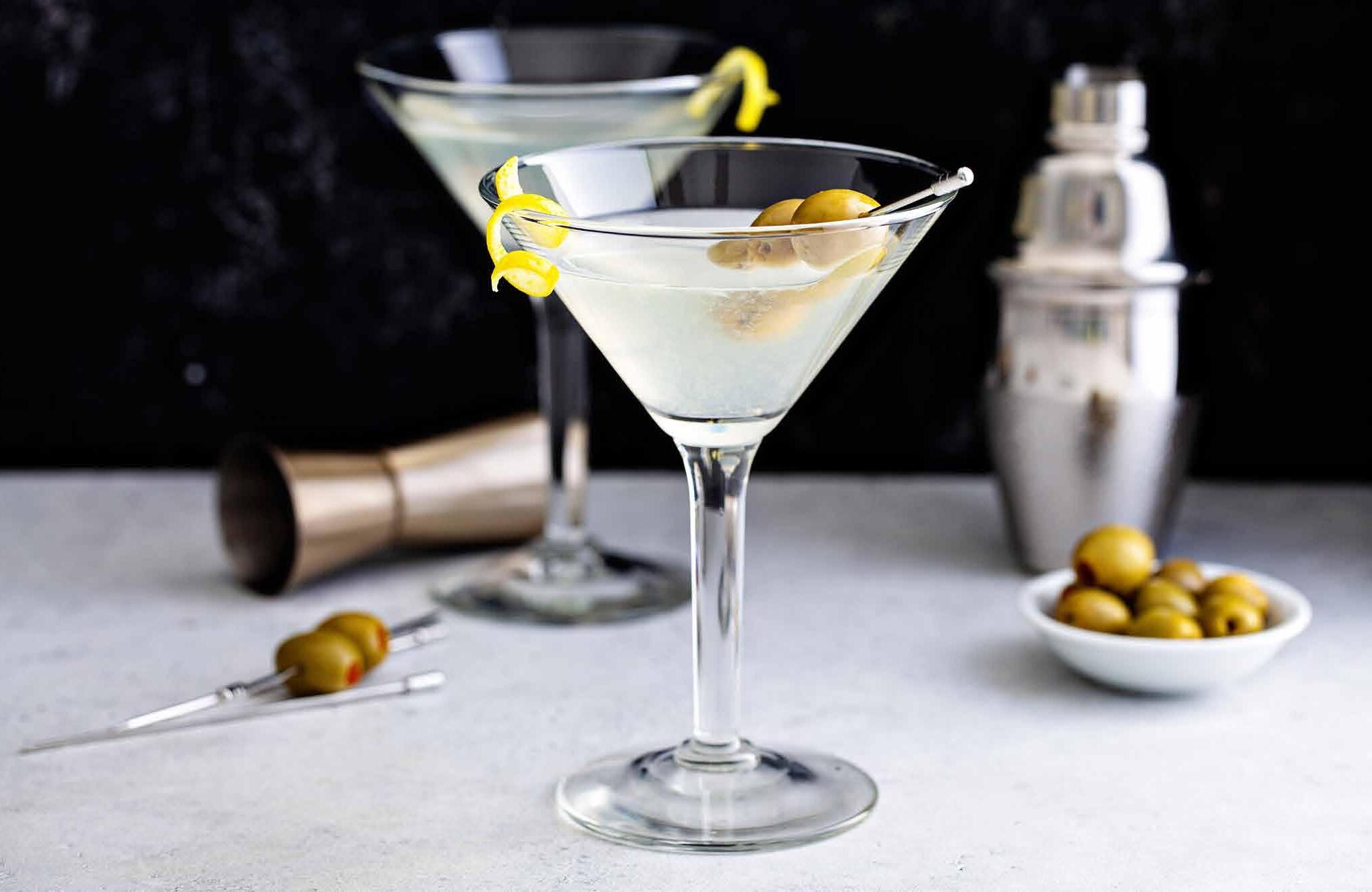 Stirred in Martini glass. Garnish with pepperoncini rings.