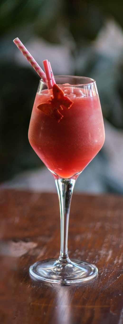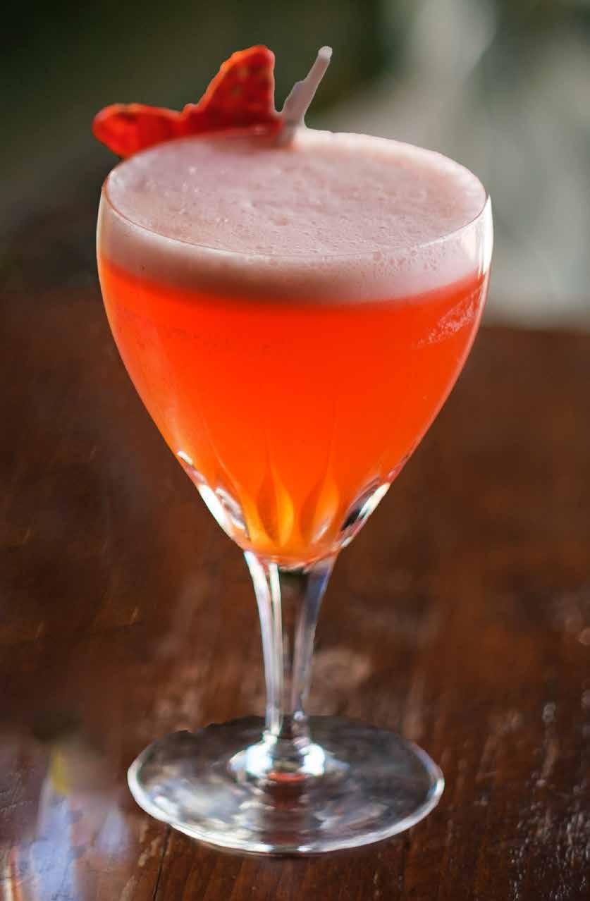 ROSEFINCH INGREDIENTS 1 1/4 oz. Malfy Gin Rosa 1 oz. Campari 1 oz. grapefruit juice 1/2 oz. simple syrup 4-6 dashes of Fee Brothers eggless Dried Rosebud petals (for garnish) PREPARATION Add all liquid ingredients into tin (no ice) and dry shake. Add ice and shake hard for about 10 seconds. Double strain into coupe and garnish with crumbled dried rose petals. CHILLEDMAGAZINE.COM 127