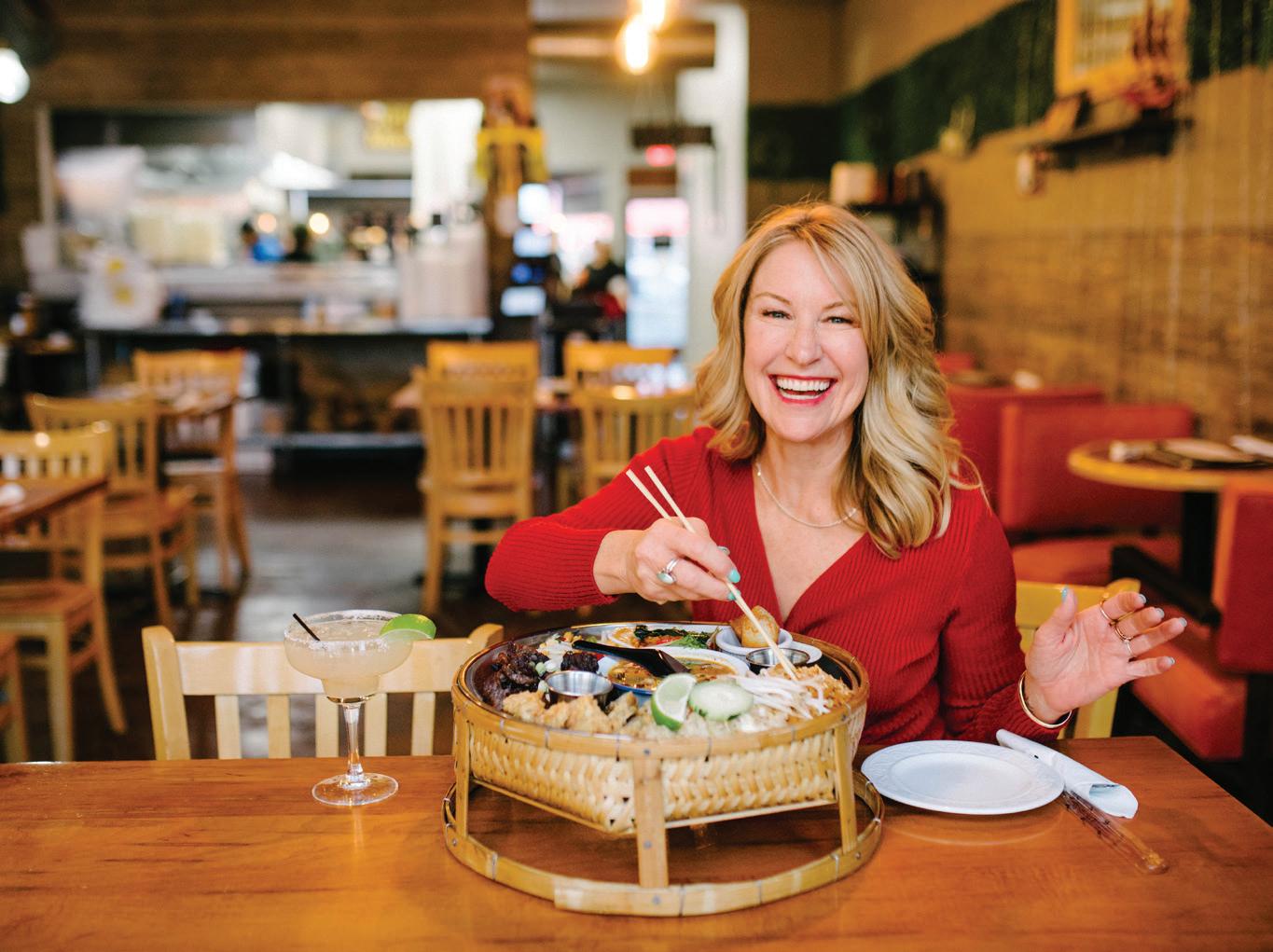 LAST LOOKS | Top left: Founded in 1975, Cambridge’s Rowe Pottery is celebrating its 50th anniversary this year. Shown are jars from the brand’s classic teaberry line, featuring signature cobalt blue designs (P. 9). Top right: Sasha Stone, a 2021 BRAVA Woman to Watch, owns Green Life Trading Co., a sustainability-focused store specializing in bulk goods and green products for home and personal care (P. 35). Bottom: Cover women Richelle Martin, Katie Rice and Heather Wentler are all lady bosses in their own right, working in venture capital and the startup accelerator world (P. 42). Middle: Colorful dishes from Monsoon Siam sit, ready to be enjoyed (P. 71).