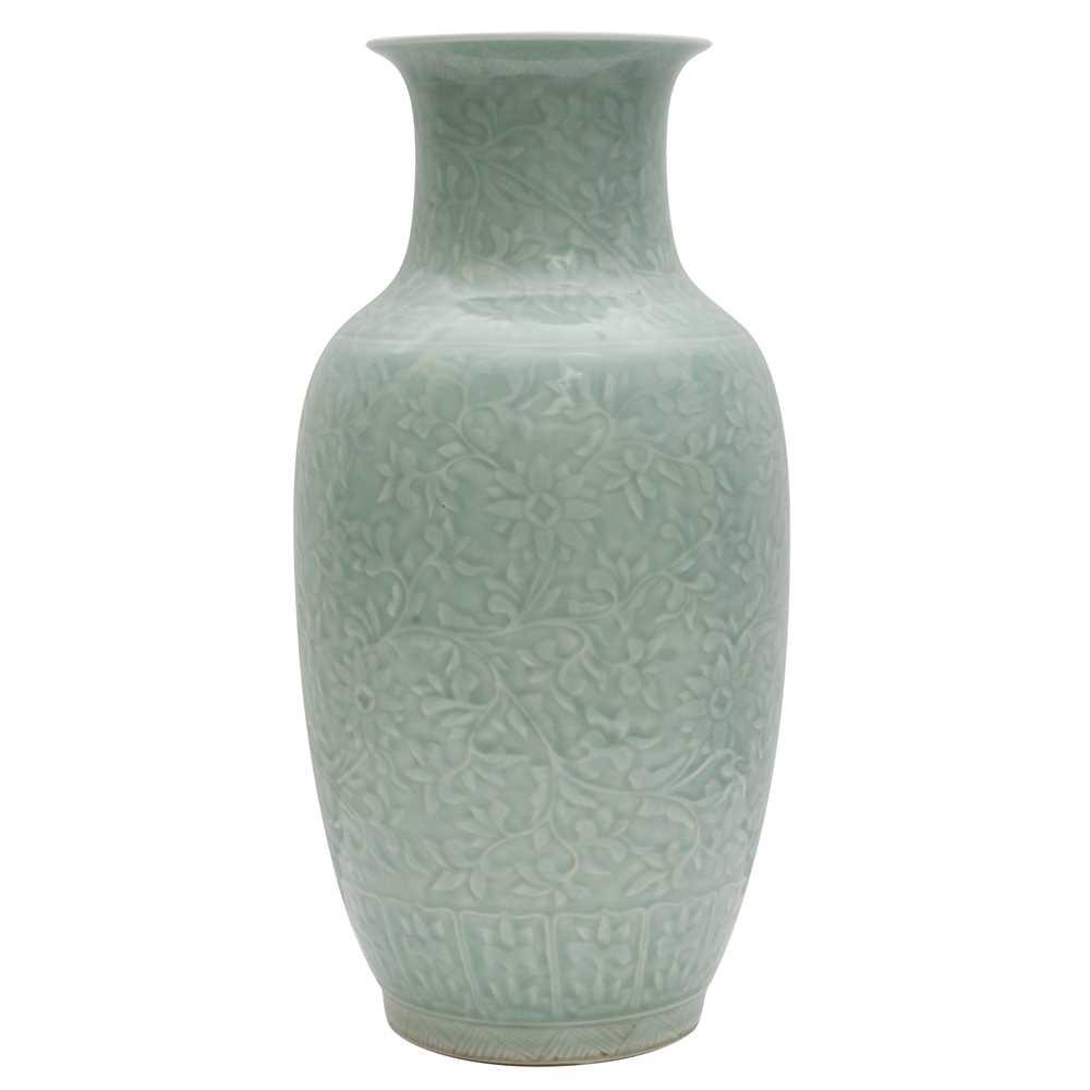 830 A Japanese blue and white celadon-ground vase, Taisho / early Showa period