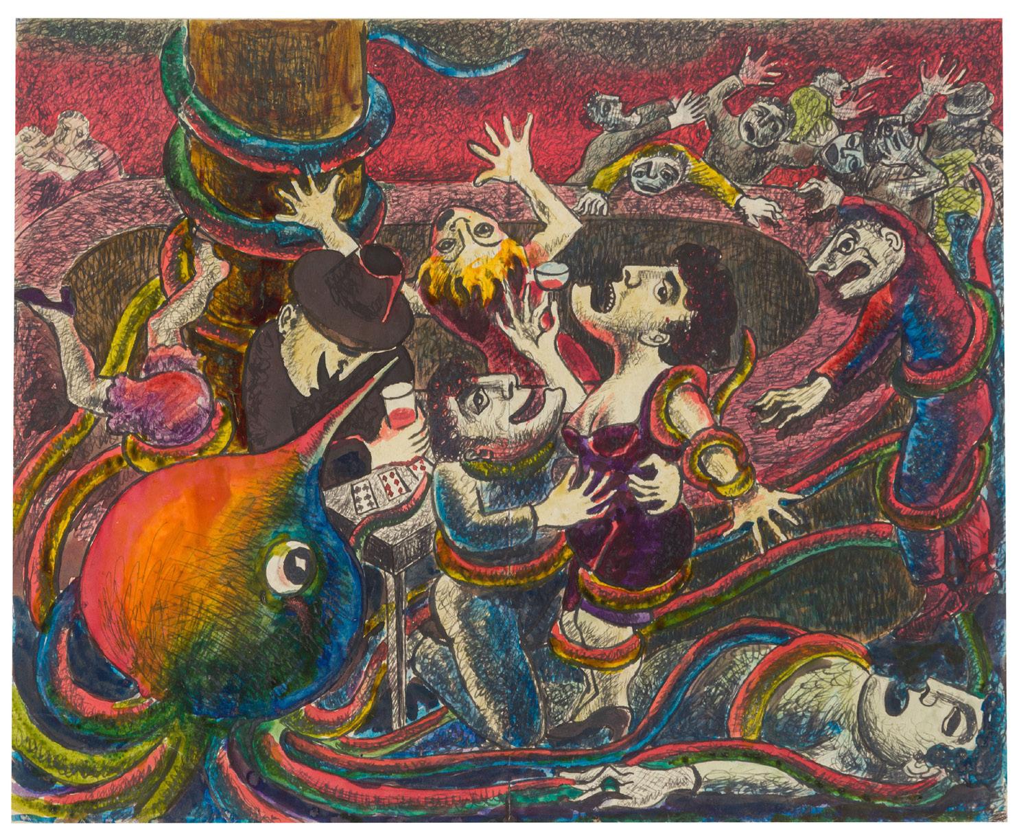 Brangwyn was an independent artist, known for his experimentation and innovation across a vast array of mediums and scales. His body of work includes murals, oil paintings, watercolours, etchings, woodcuts, lithographs, and designs for architecture, interiors, stained glass, furniture, carpets, ceramics, jewellery, book illustrations, bookplates, and commercial posters. It’s estimated that he produced over 12,000 works during his lifetime.