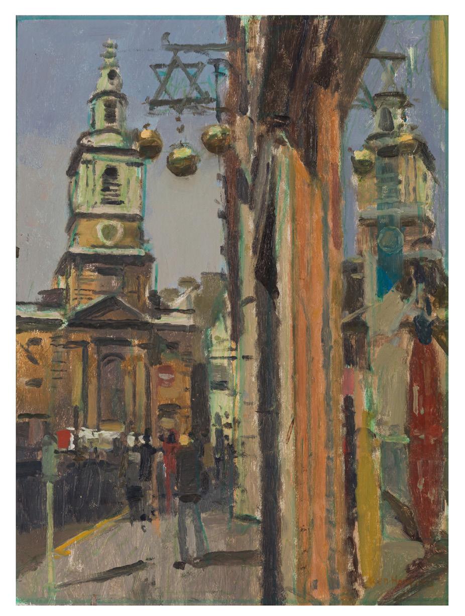 Sussex Road signed ‘Carel Weight’ (lower left); further signed and titled ‘Carel Weight/SUSSEX ROAD’ (to a label attached verso) oil on board