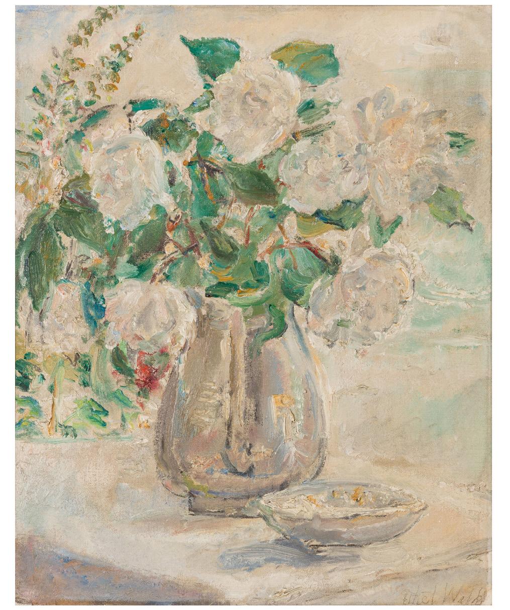 White Roses signed ‘Ethel Walker’ (lower right); further signed and titled ‘WHITE ROSES/Ethel Walker’ (verso) oil on canvas