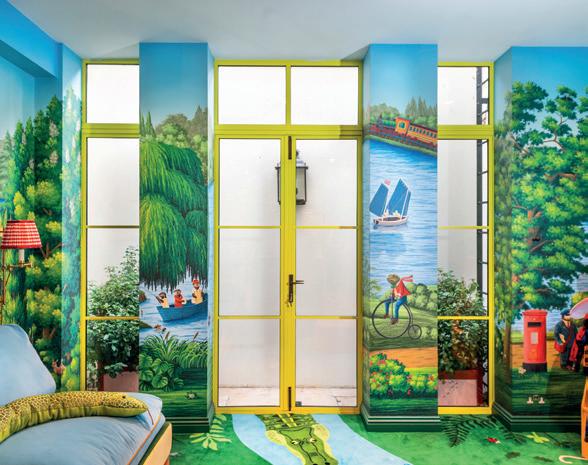 H annah recently decided to reconfigure her London property to accommodate her growing family, and the basement was turned into a playroom with adjoining utility and a bathroom. The walls of the playroom are decorated in a beautiful artisan wallpaper scene of London.